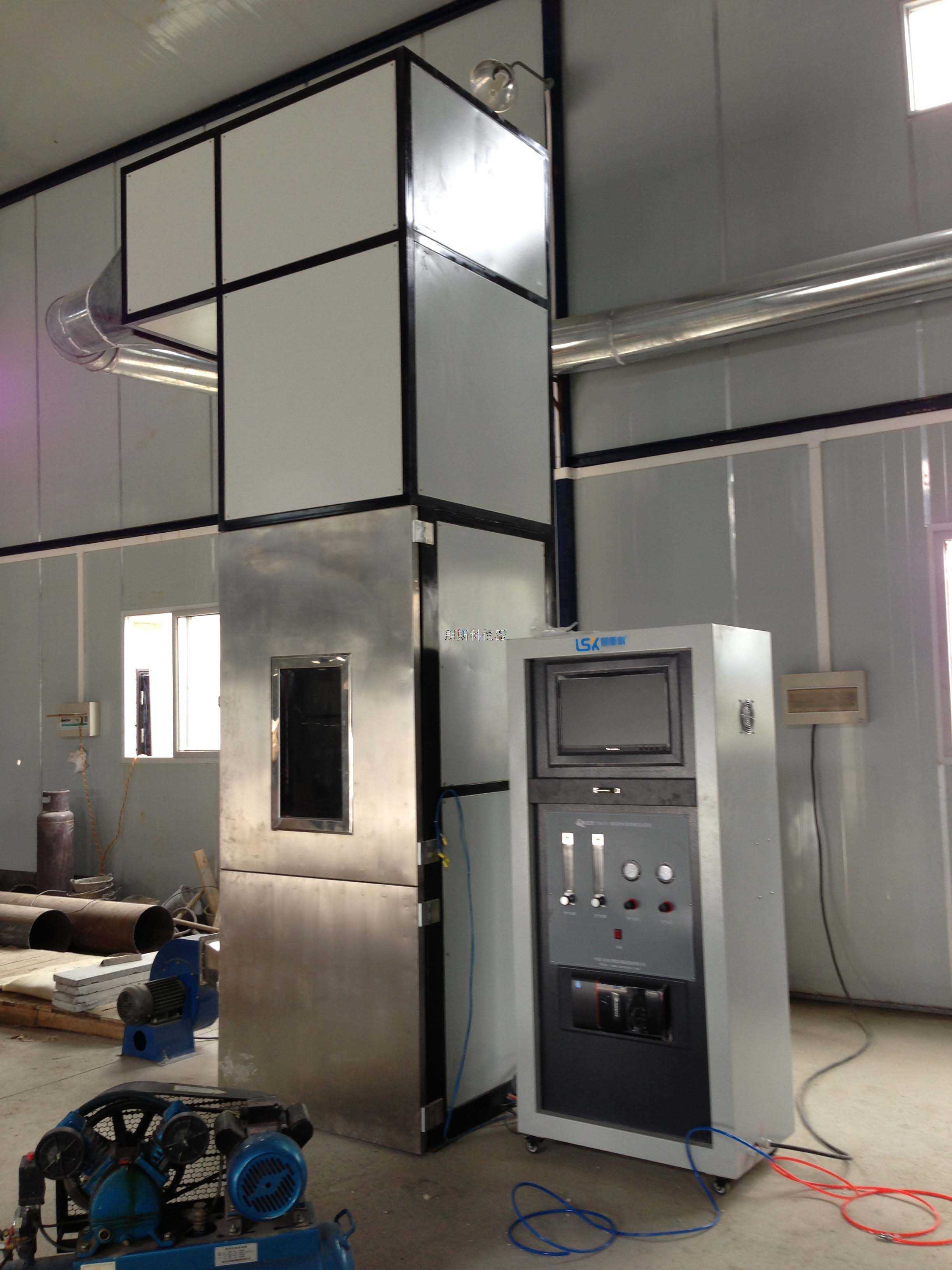 試驗箱、電器控制系統(tǒng)、空氣源、引燃源流量控制系統(tǒng)(丙烷燃氣和空氣壓縮氣體)、鋼梯、滅火裝置、排放物凈化裝置等組成。